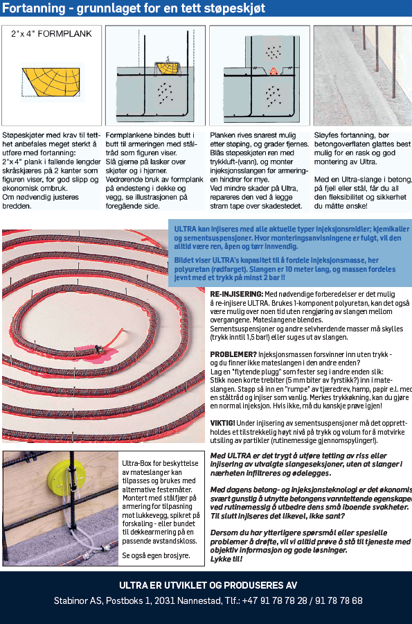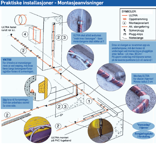 ULTRA kan «buttskjøtes» med lynlim. Endene må tapes og klippes pent og glatt. Påfør lim over hele endeflaten. Legg tape over skjøten.